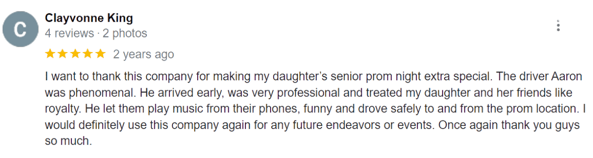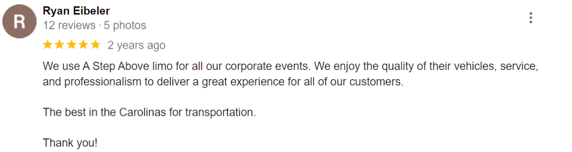 A Step Above Limousine provides high-end vehicles at competitive rates.