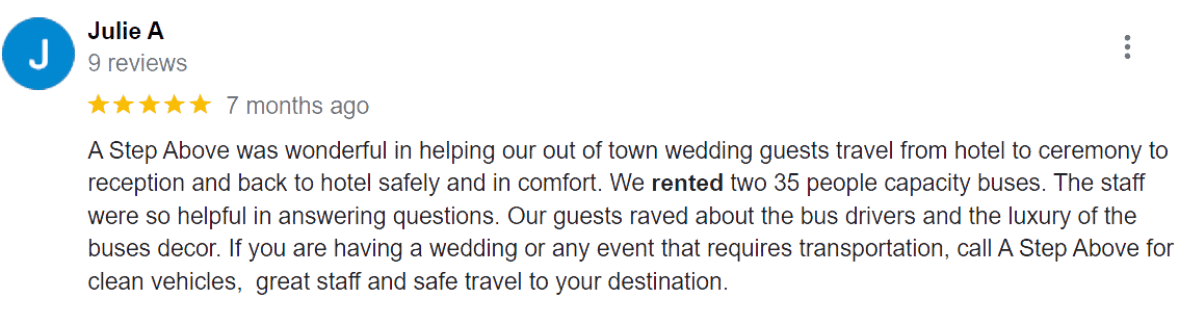A Step Above Limousine offers luxury, affordable charter buses for all your transportation needs.